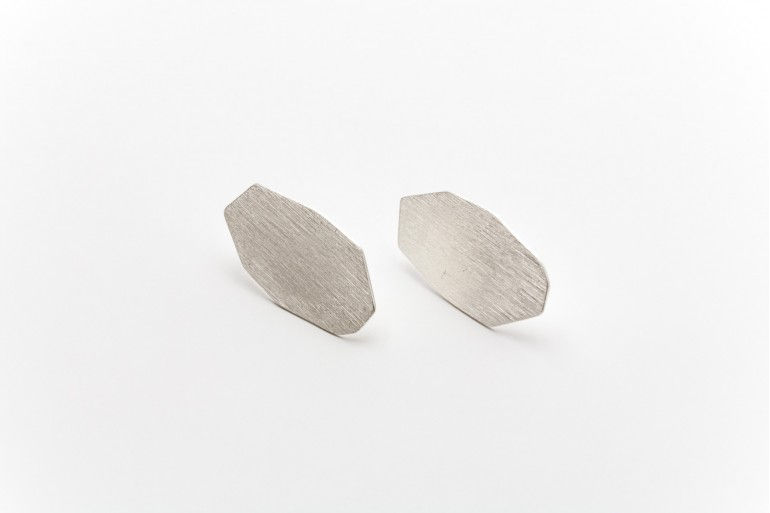 Deco Echo Anna Krul Brushed Silver Pentagon Earrings